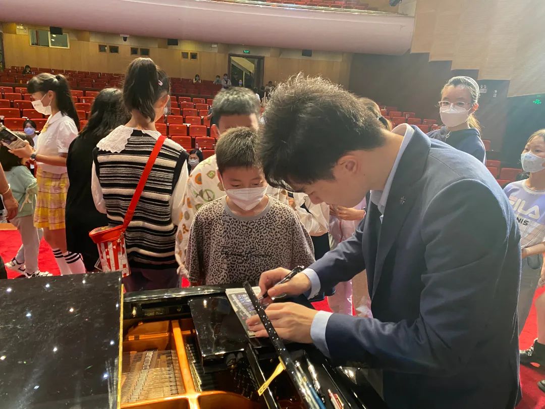 音樂會結(jié)束后,觀眾們?nèi)猿两跉g樂的音樂世界中,眾多琴童有序上臺請兩位鋼琴家簽名并合影留念,現(xiàn)場氣氛十分溫馨。